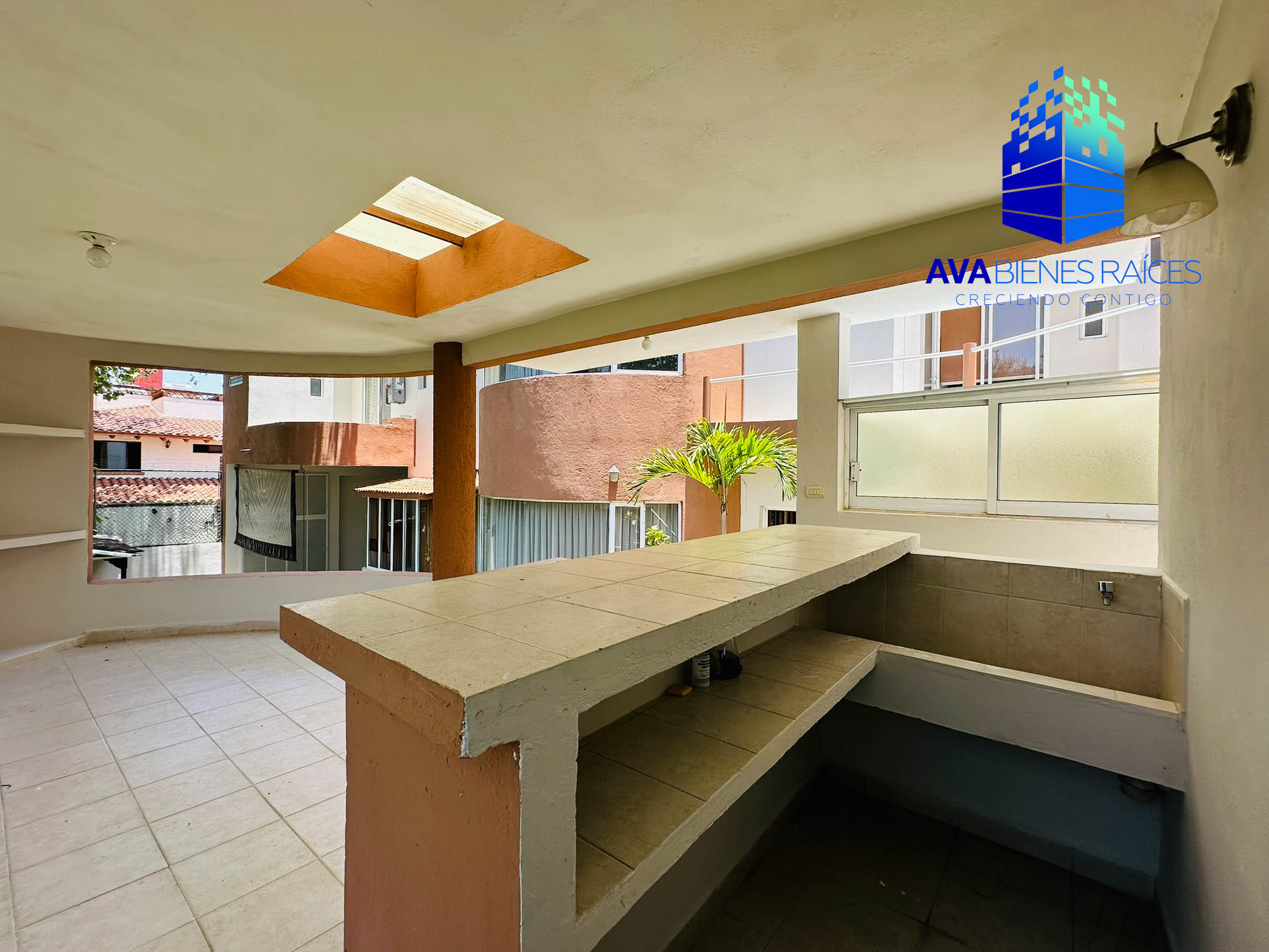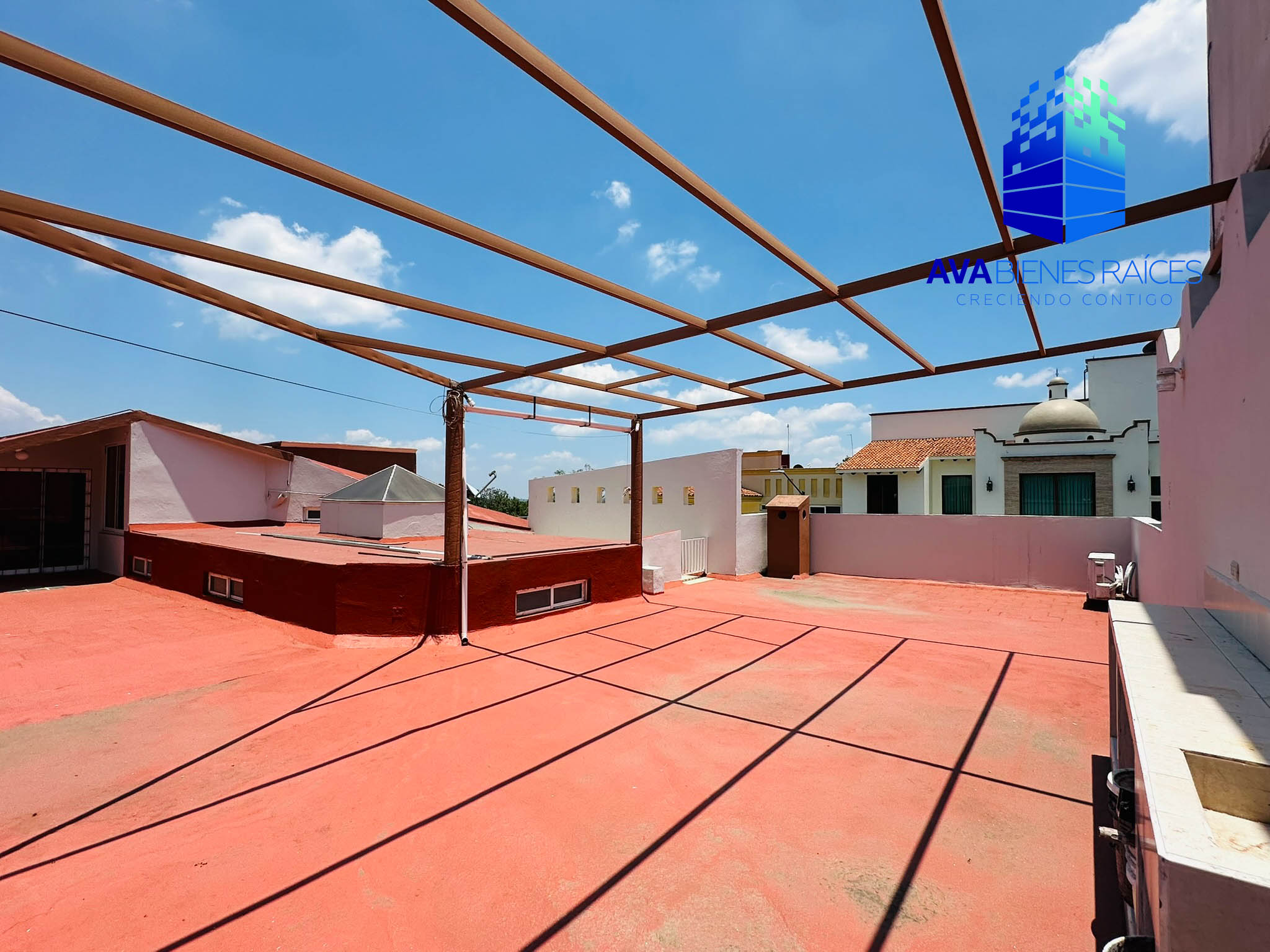Planta baja: Sala con chimenea, recibidor estancia, estudio con mueble empotrado librero, medio baño para visitas, cocina integral con alacena y barra desayunador(incluye estufa y campana), antecomedor con vista al jardín, cochera para 6 autos, jardín, comedor, bar o sala de TV, terraza con barra de servicio y medio baño, bodega, cuarto de servicio con baño, cuarto de lavado, escaleras con acceso a azotea con medio baño, azotea inpermeabiliazada.