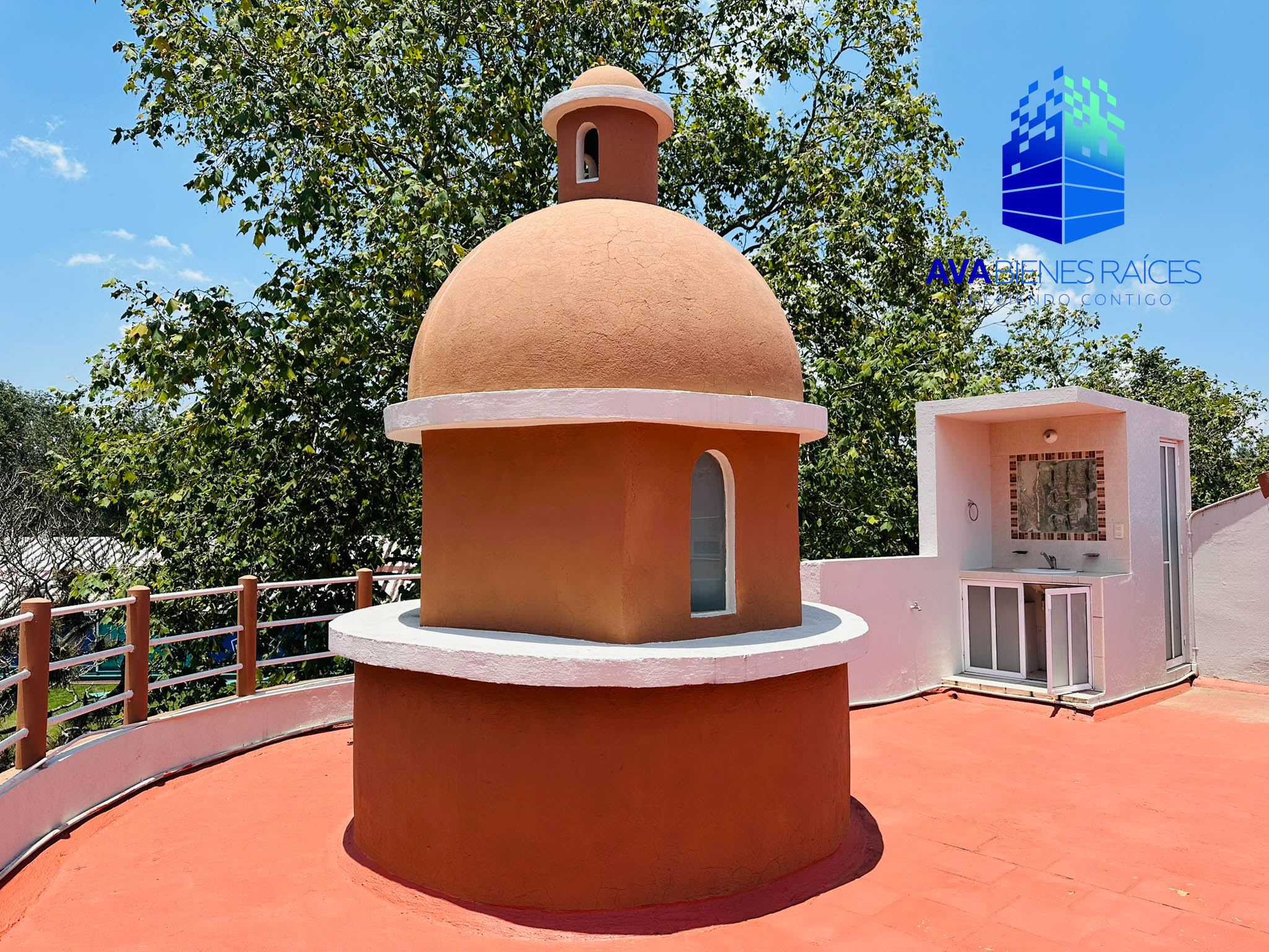 Planta alta: 5 recámaras, bar, área de TV, la recámara principal con cúpula, vestidor y baño completo con tina, 4 recámaras secundarias, 3 de ellas con tapanco, vestidor y 3 baños completos para las secundarias.