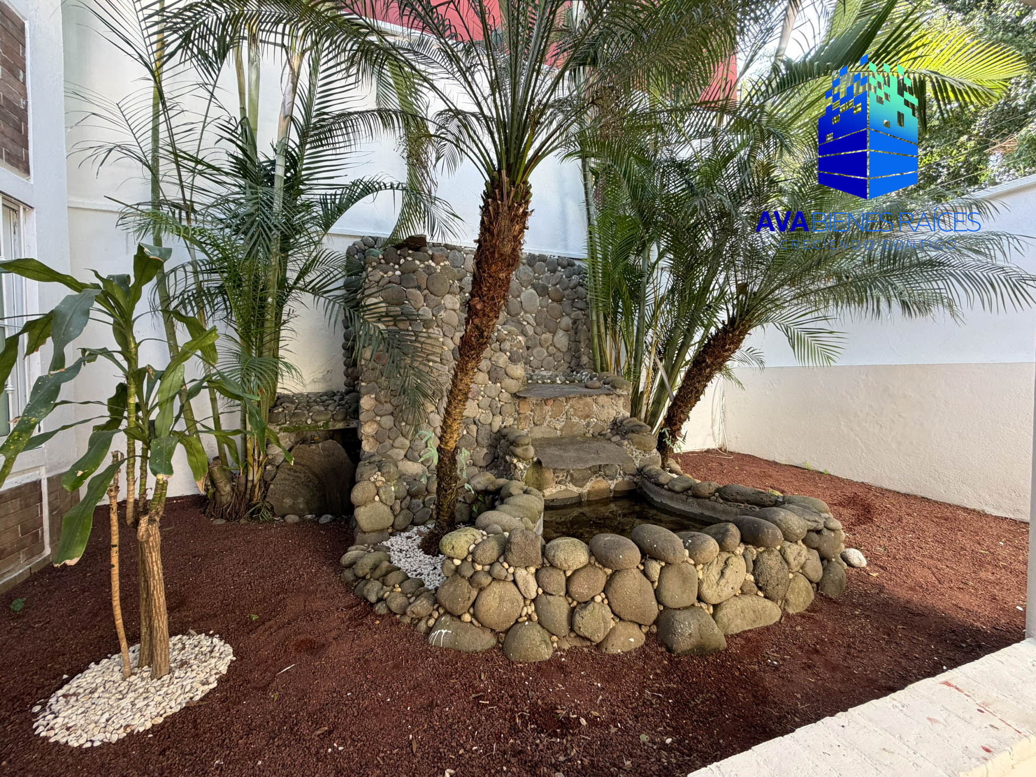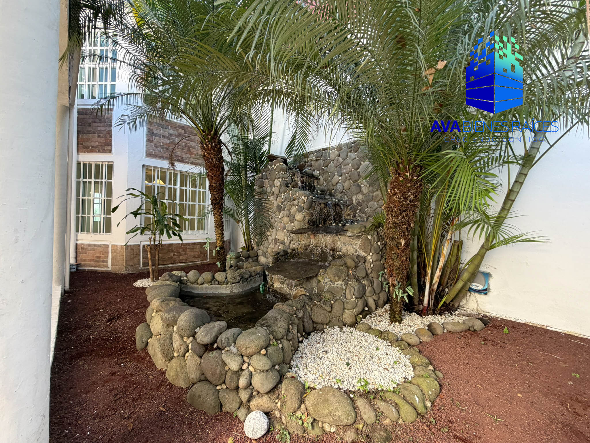 - Fuente de piedra al ingreso