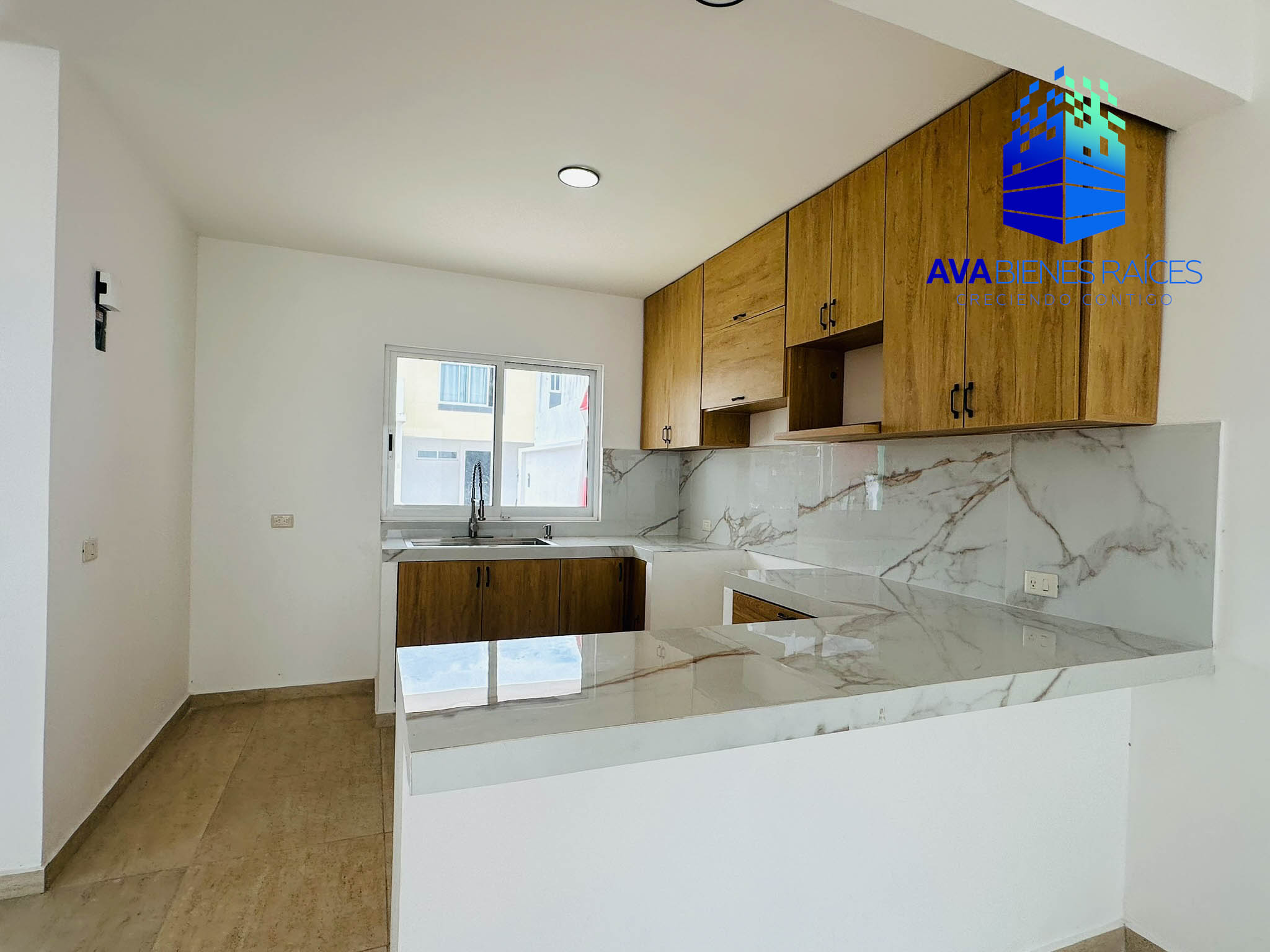 Cocina barra de cerámico, tarja acero c/ accesorios tina doble profunda y barra desayunador.
