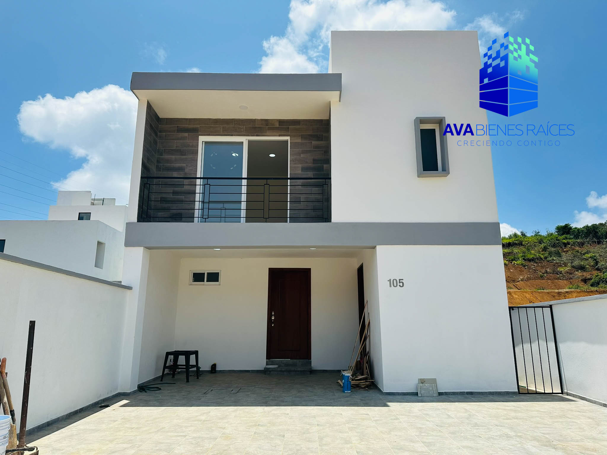 Planta alta: 3 recámaras, la principal con vestidor, balcón y baño completo, 2 recámaras secundarias con closet compartiendo baño completo, barandal en escalera.