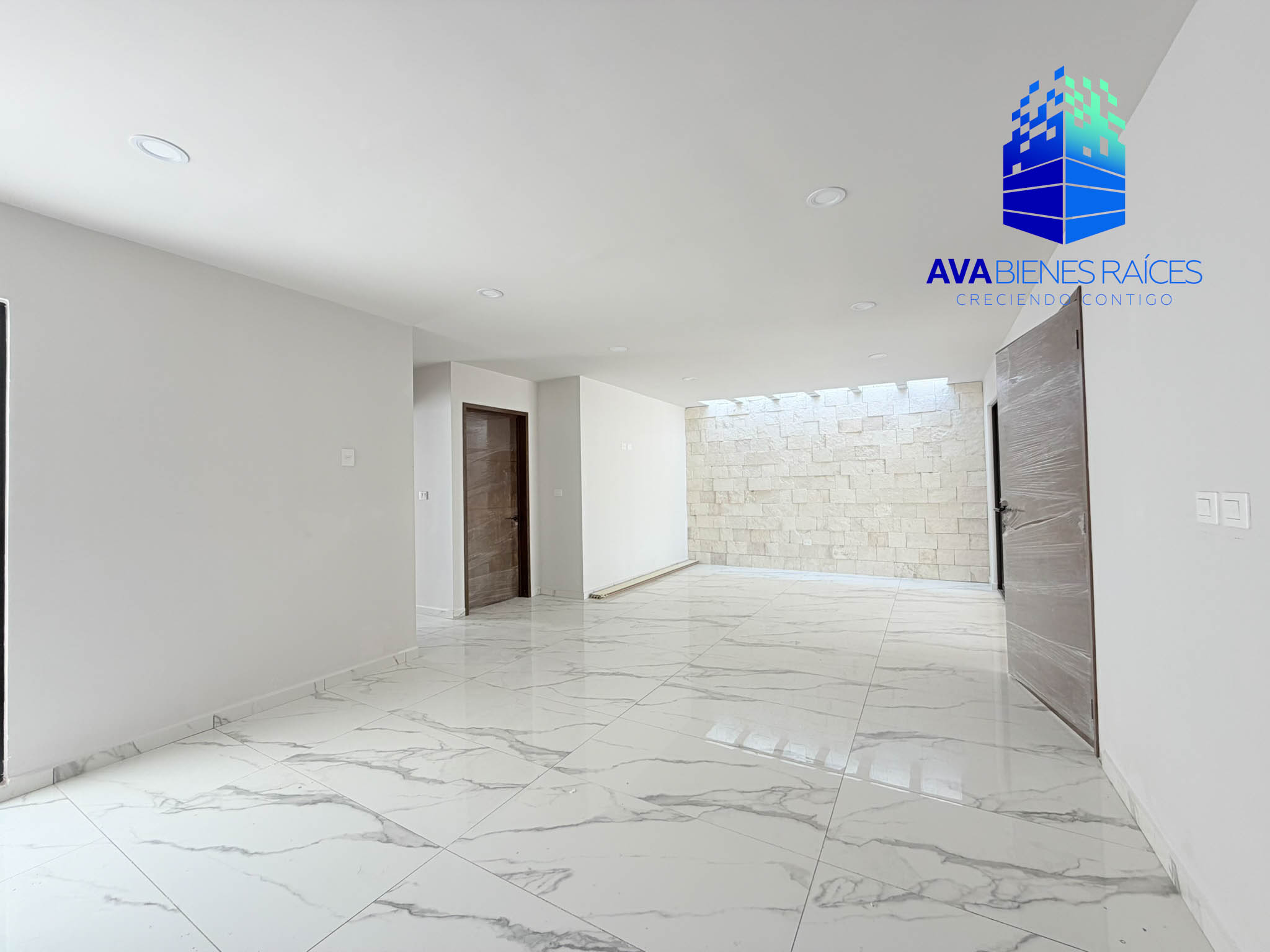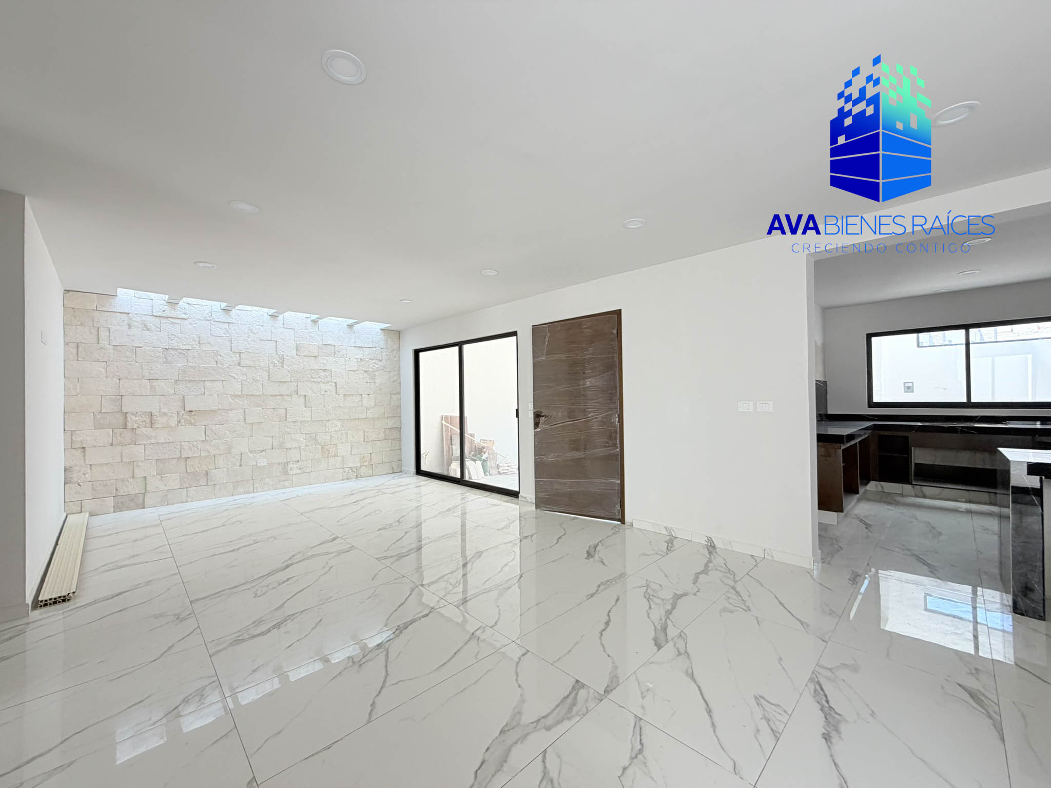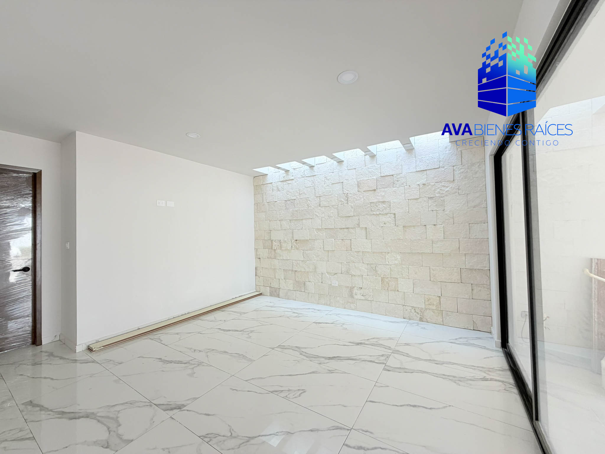 • Sala / comedor con elegante muro de cantera