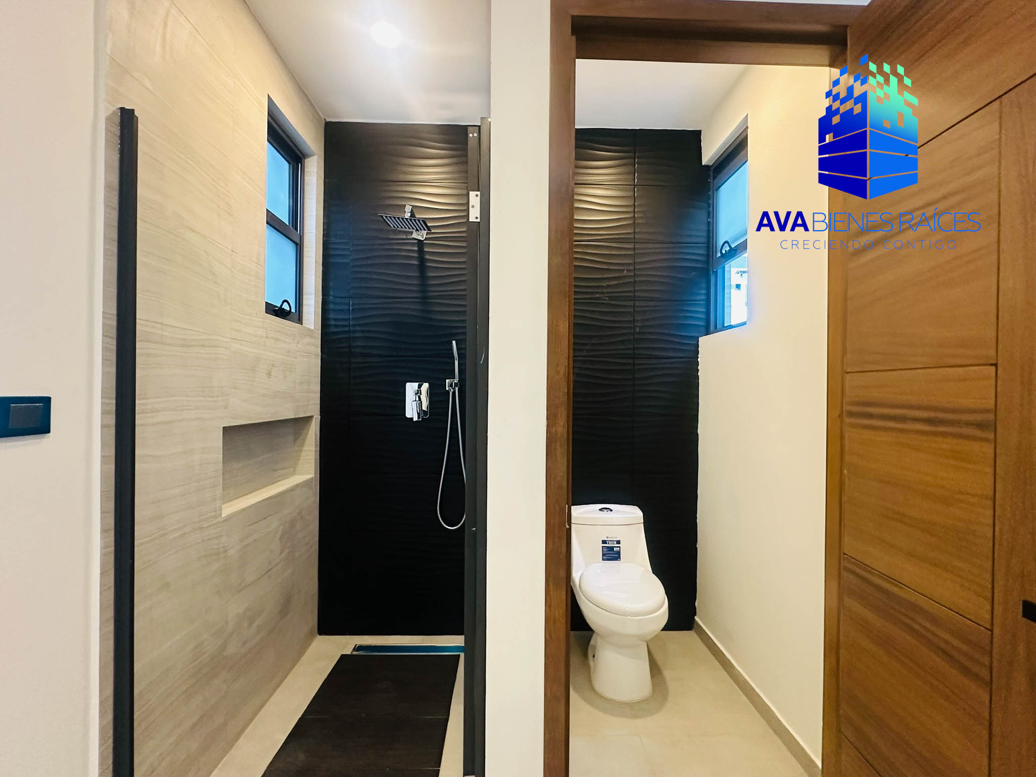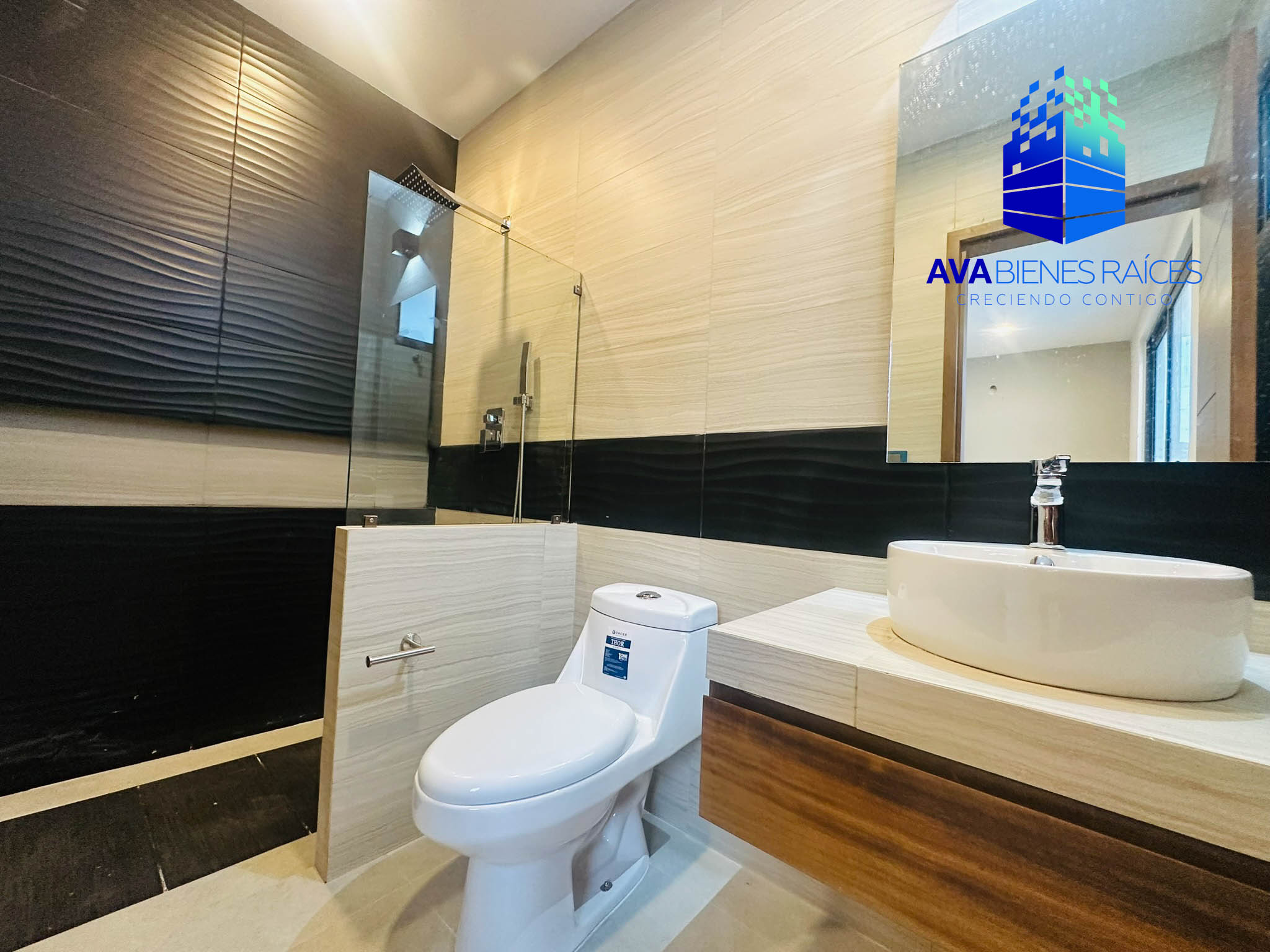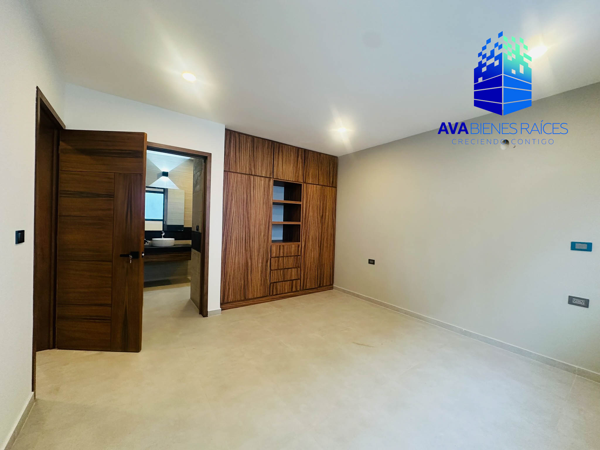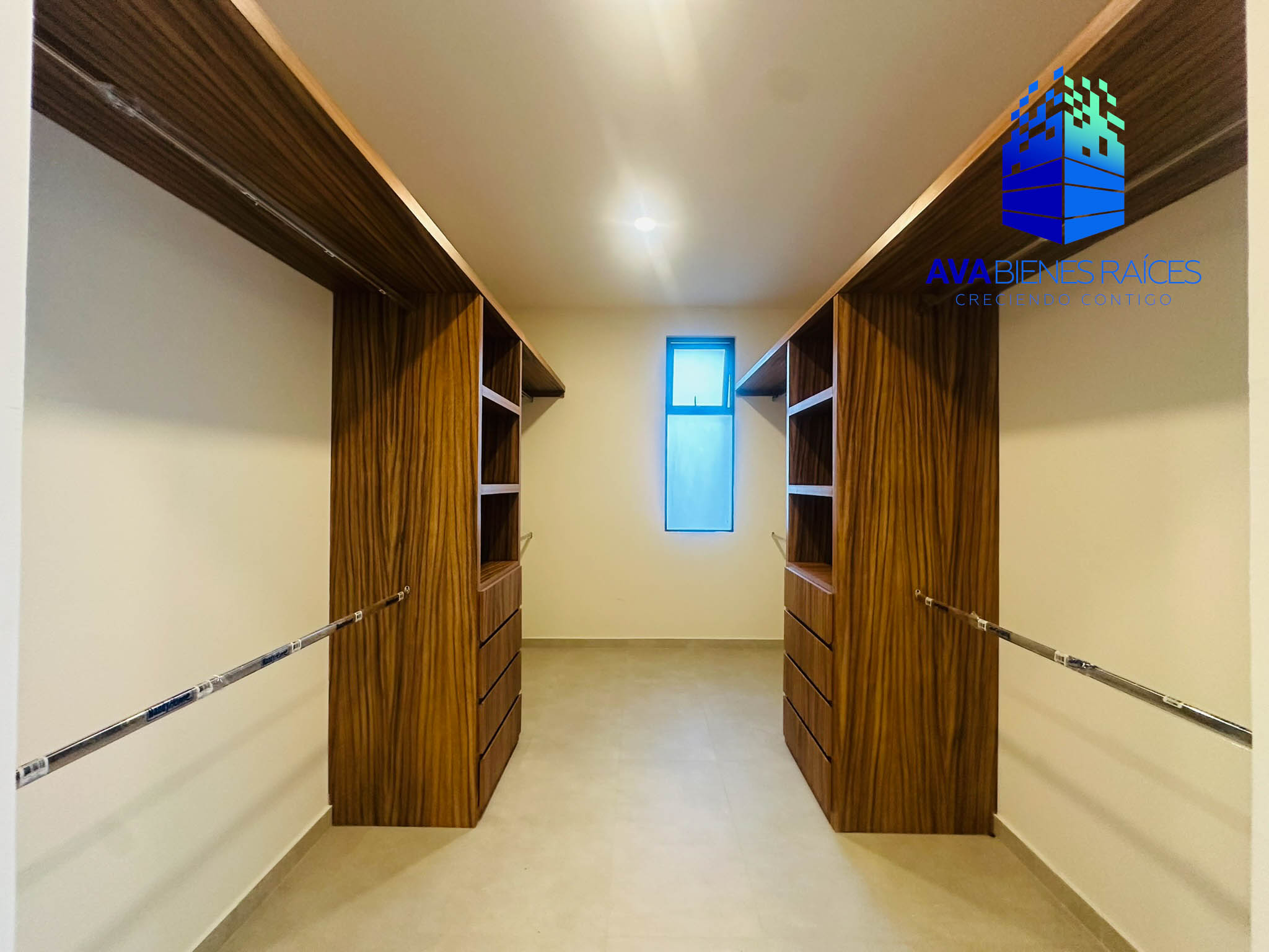 Planta alta: closet de blancos, área de TV, 3 recámaras, la principal con balcón, vestidor y baño completo con doble ovalín, además de regadera separada de sanitario; 2 recámaras secundarias con closet y baño completo cada una.
