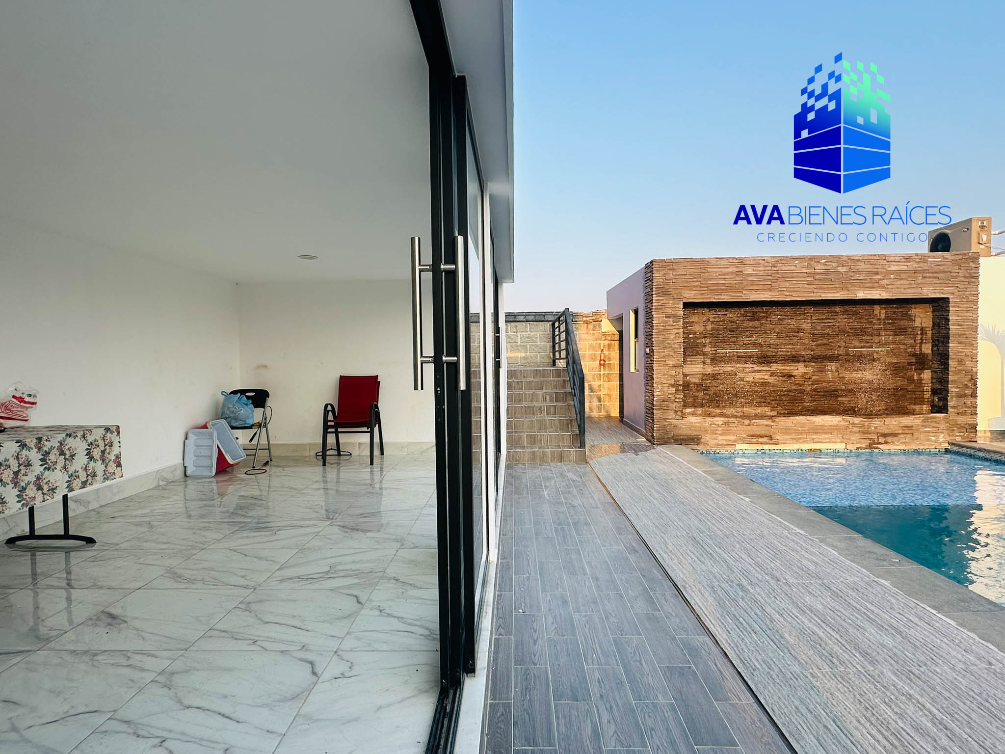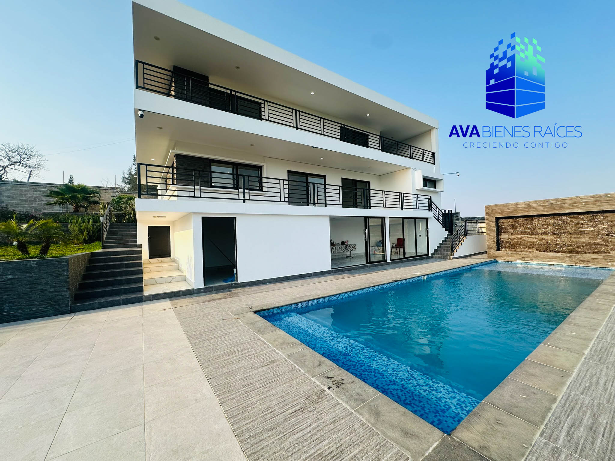 Nivel -1: bodega amplia, salón de juegos o bar, alberca, cuarto de maquinas, un baño completo para uso de visitas a la alberca, terraza amplia con piso.