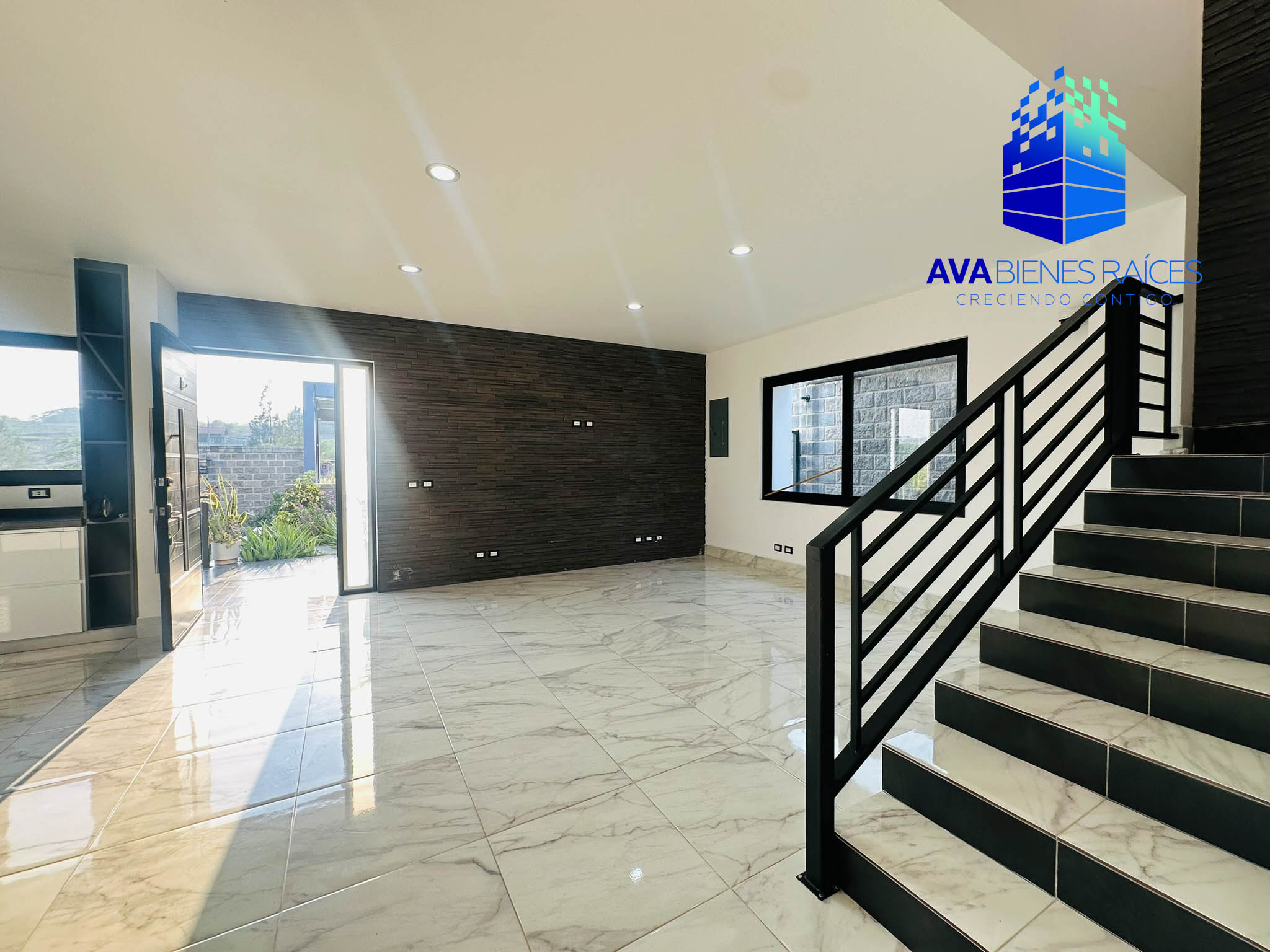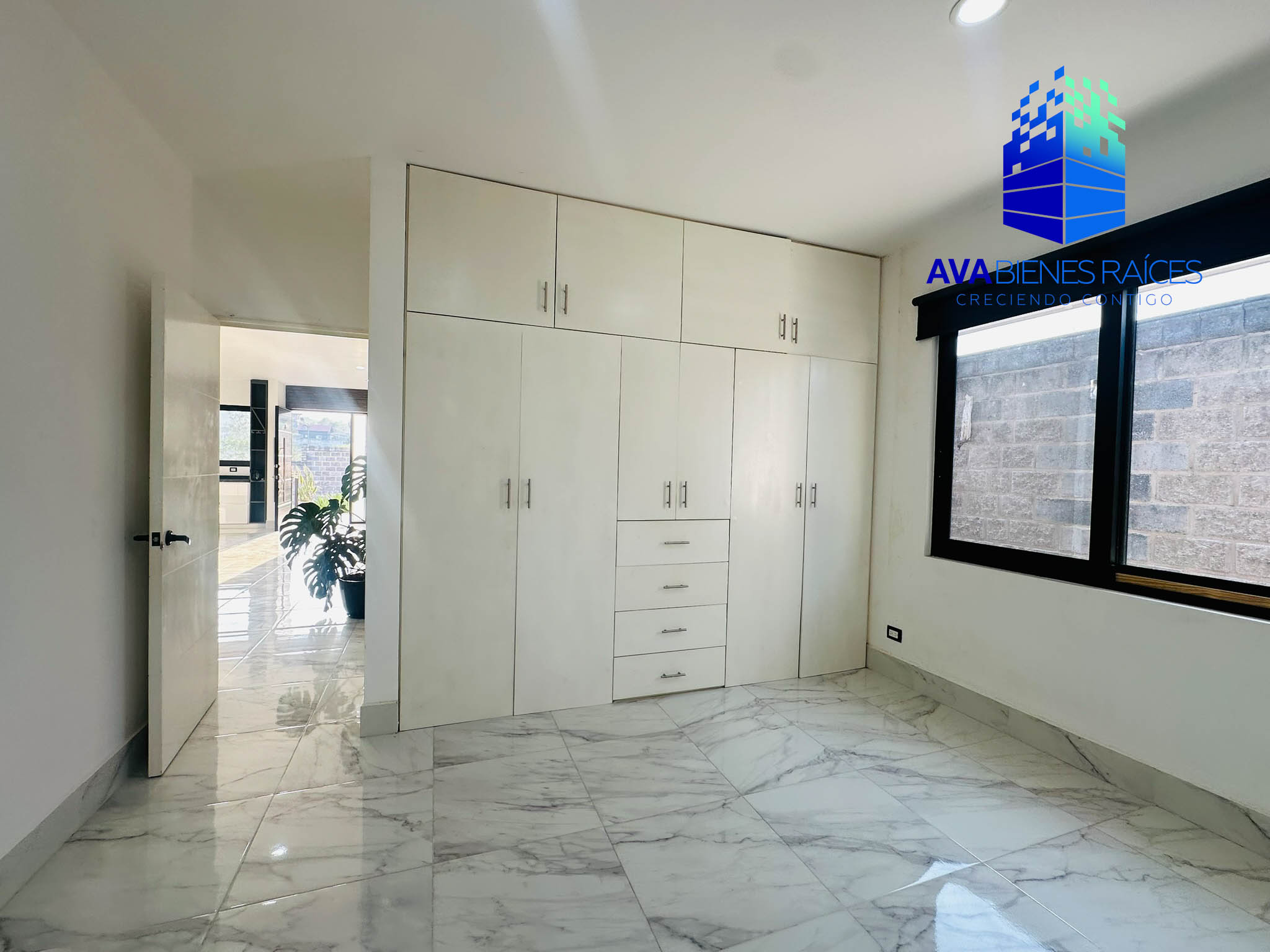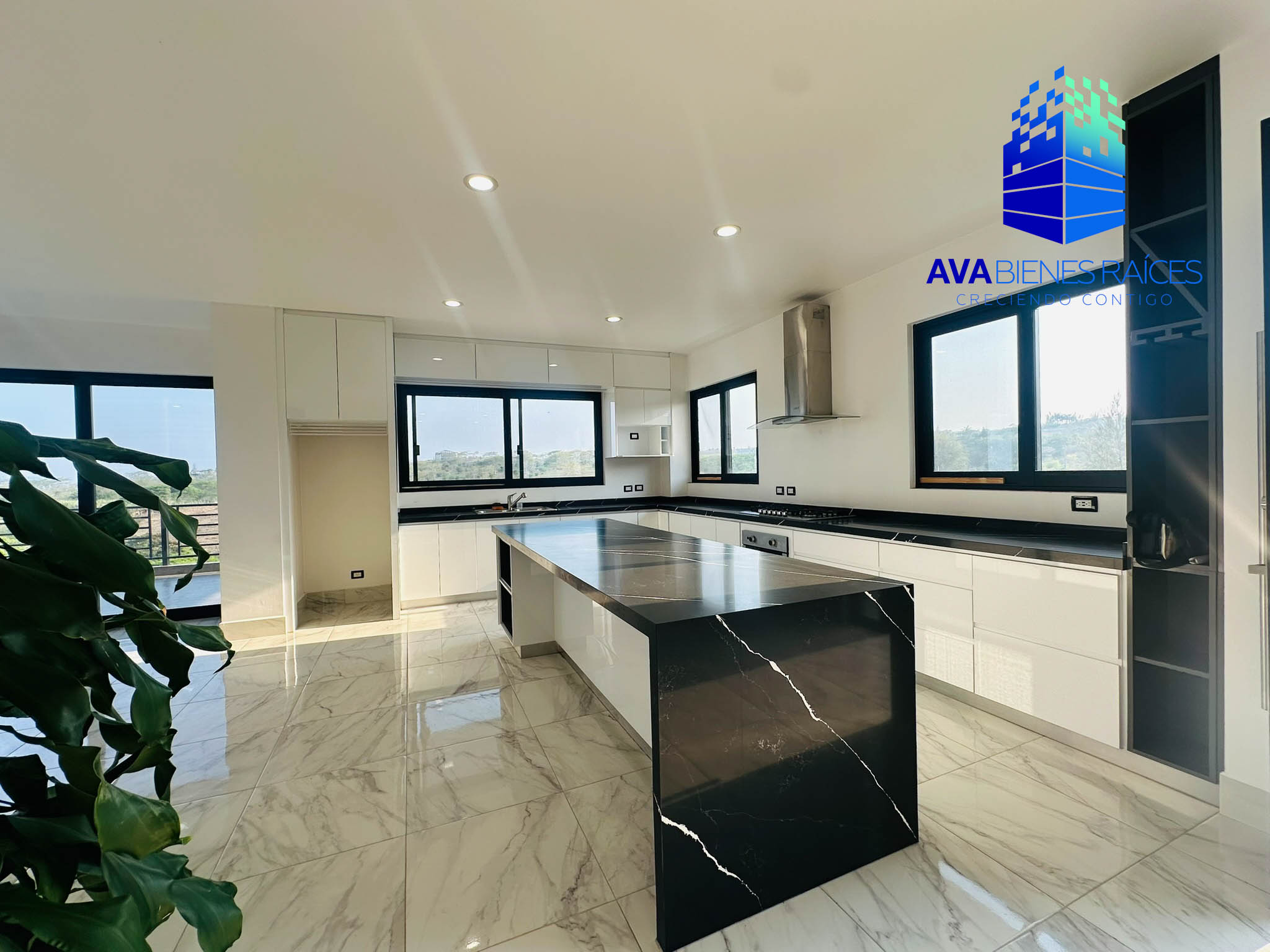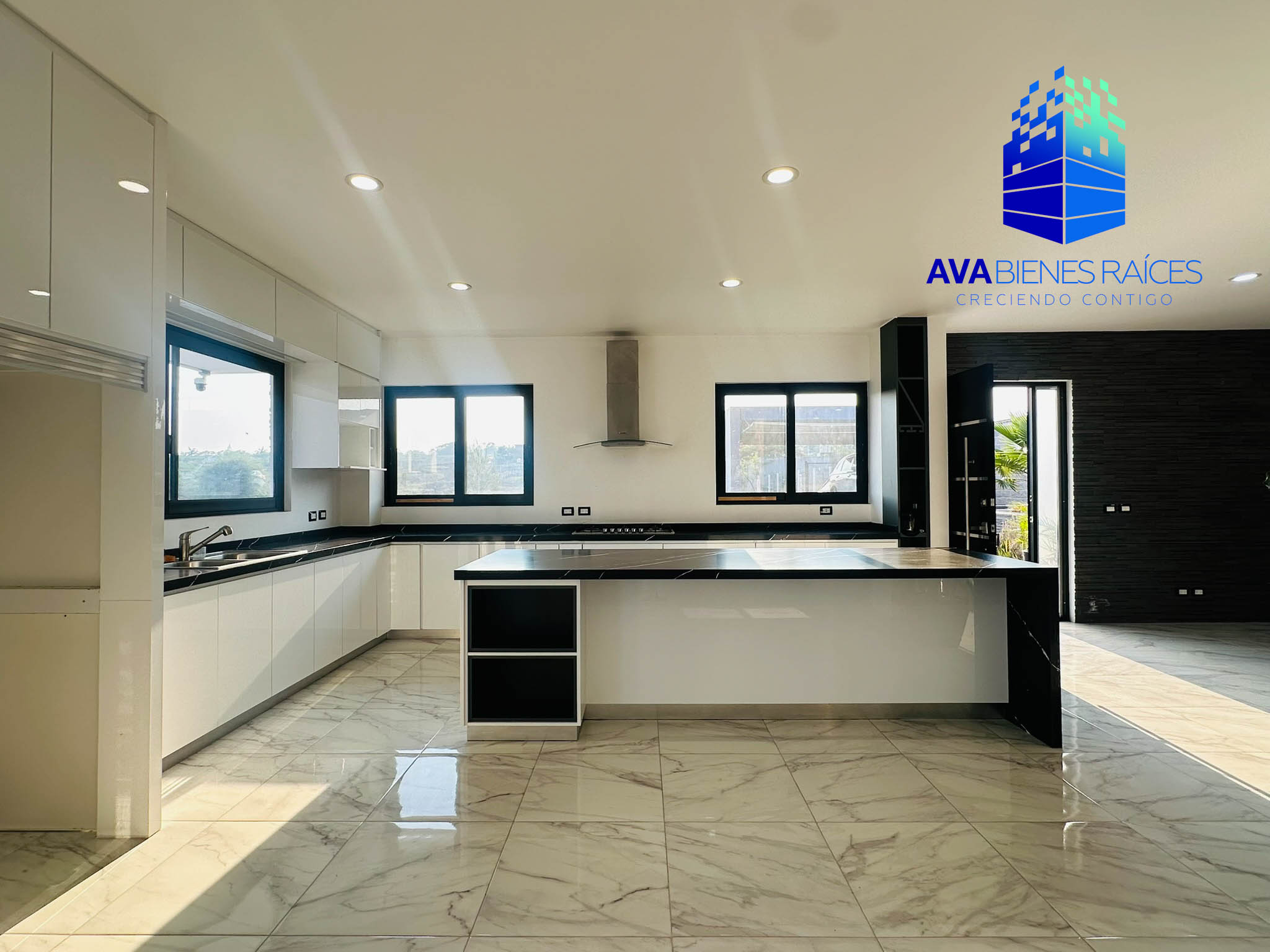 Planta baja: cochera para 2 autos con porton automatizado, jardineras, sala, comedor, cocina integral con isla, parrilla, campana, horno y doble tarja submontable, bodega, balcón, recámara con closet, un baño completo, recámara principal climatizada con espacio para vestidor, baño completo con tina, doble lavabo y regadera, área de lavado, pasillo de servicio.
