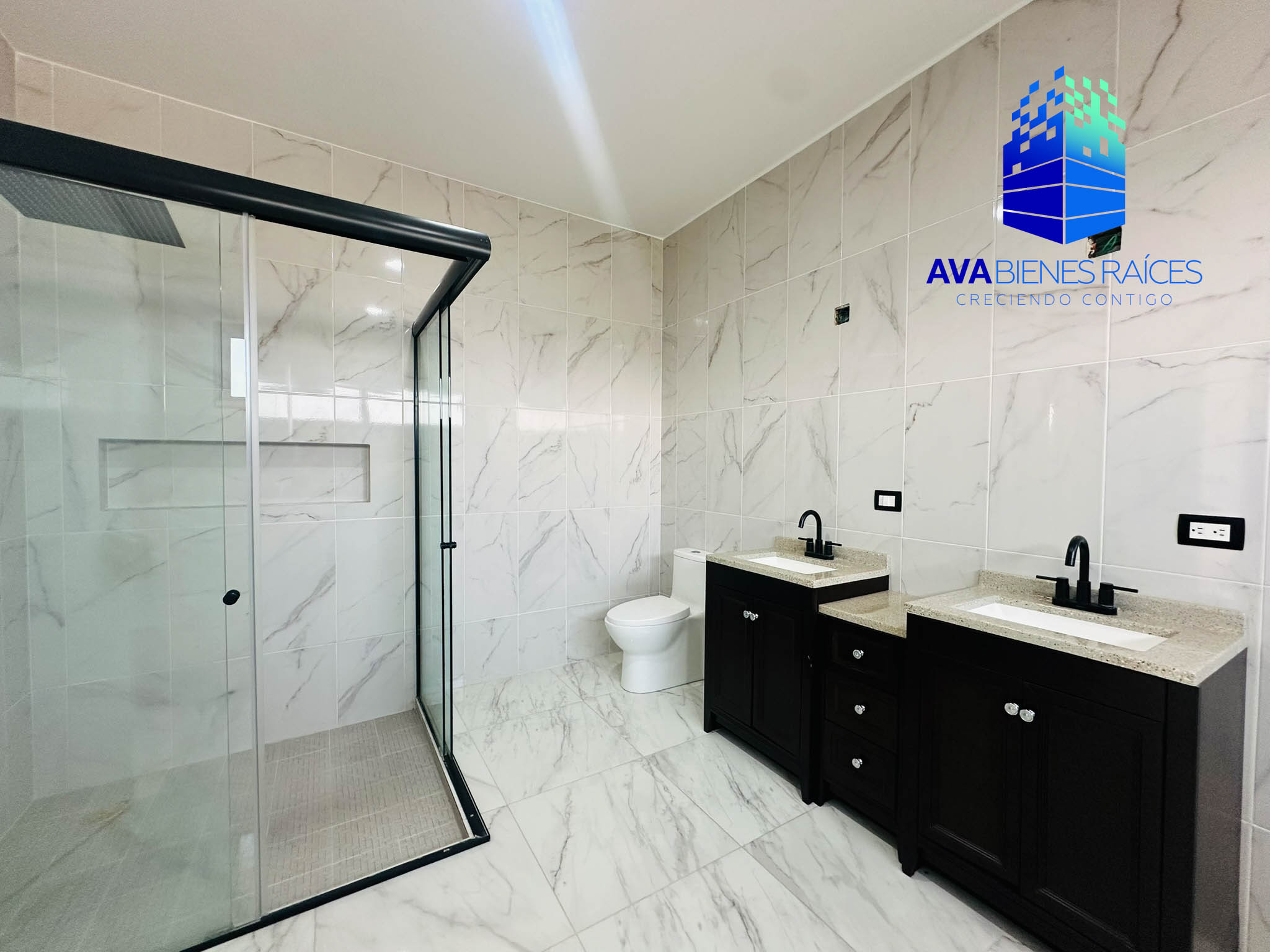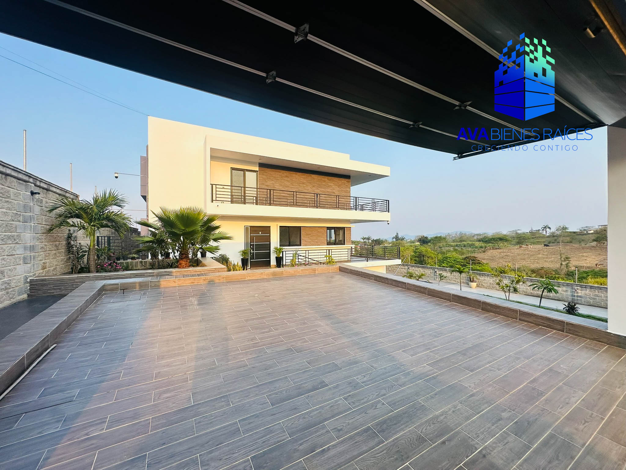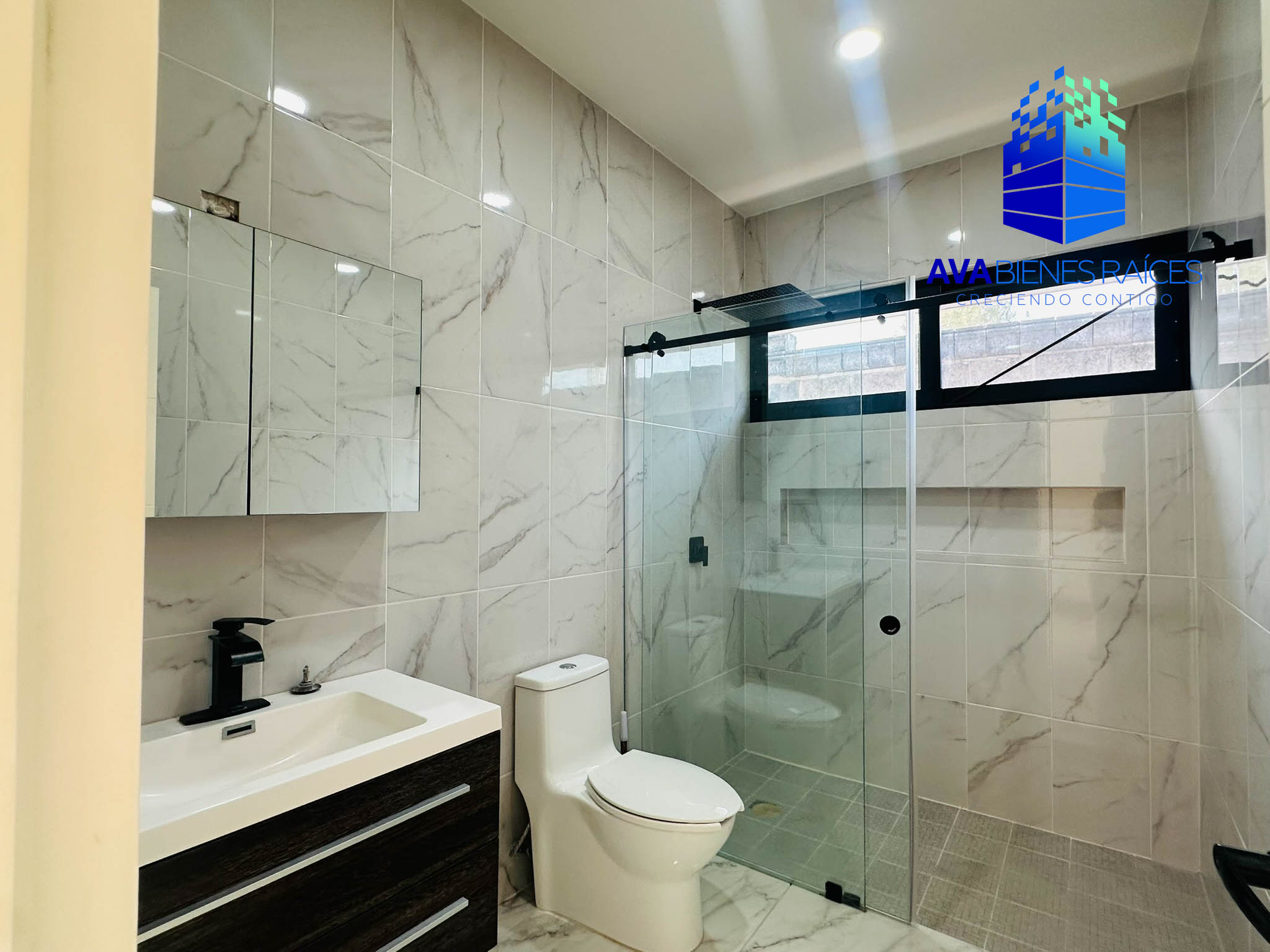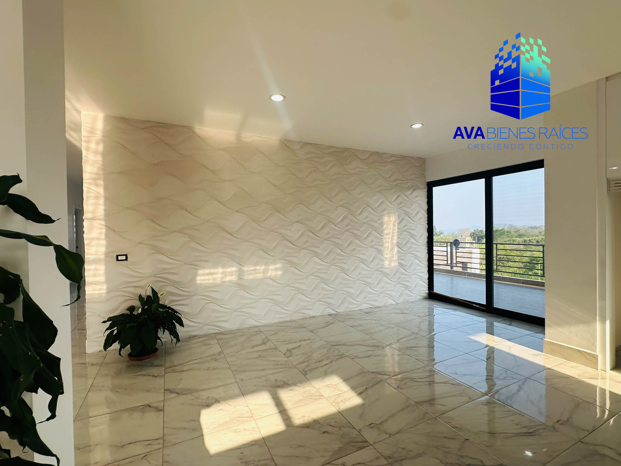 Planta baja: cochera para 2 autos con porton automatizado, jardineras, sala, comedor, cocina integral con isla, parrilla, campana, horno y doble tarja submontable, bodega, balcón, recámara con closet, un baño completo, recámara principal climatizada con espacio para vestidor, baño completo con tina, doble lavabo y regadera, área de lavado, pasillo de servicio.