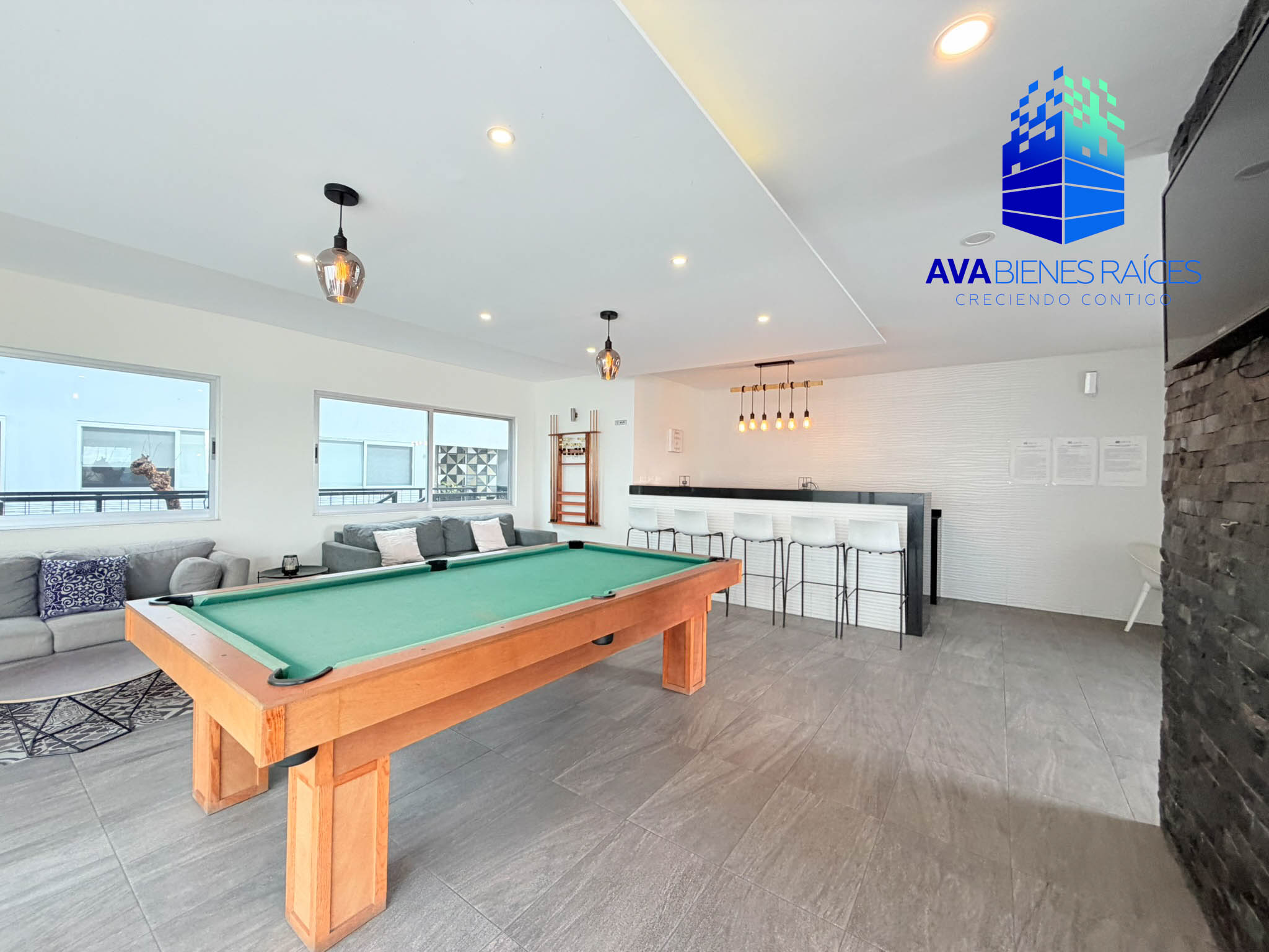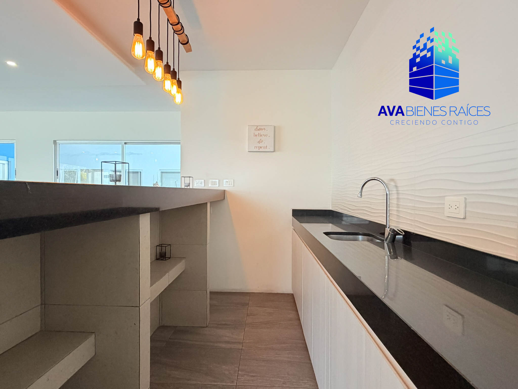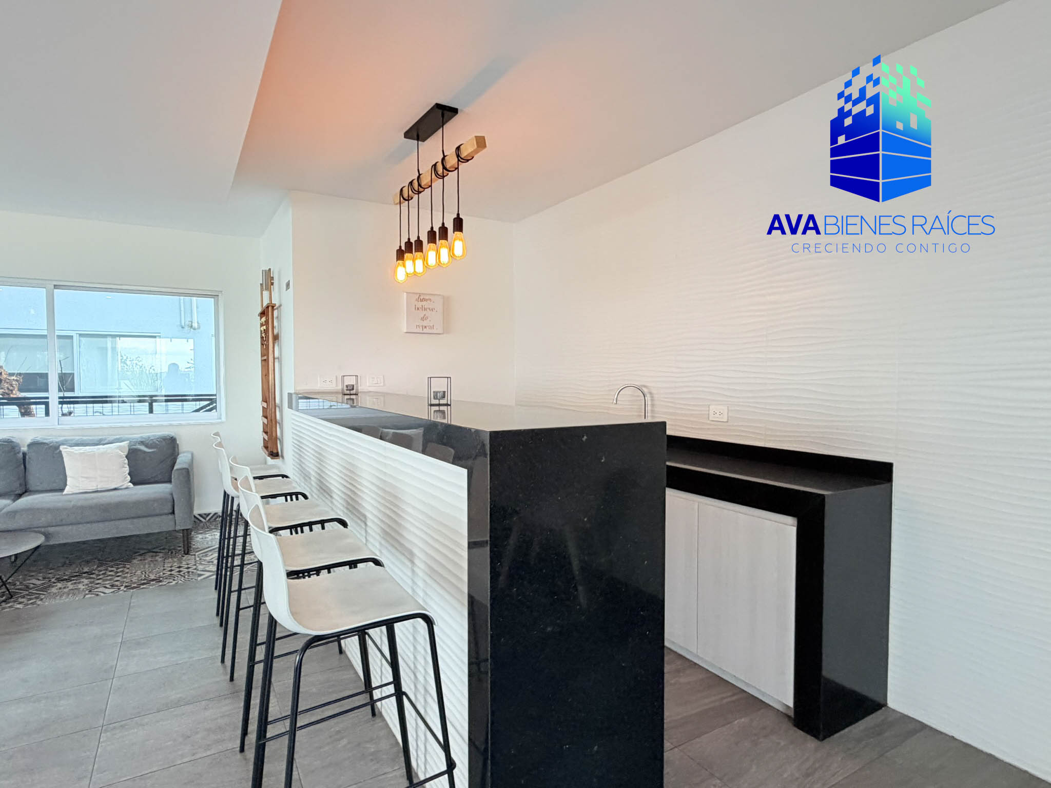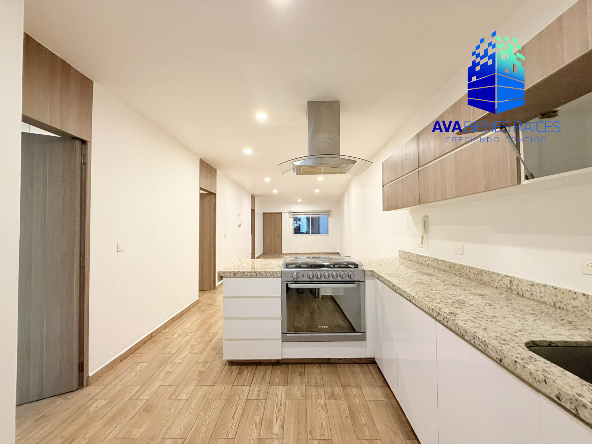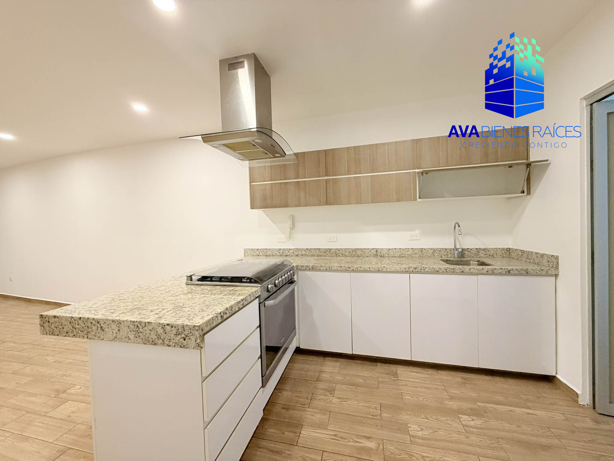 • Cocina integral con barra de granito, incluye estufa y campana