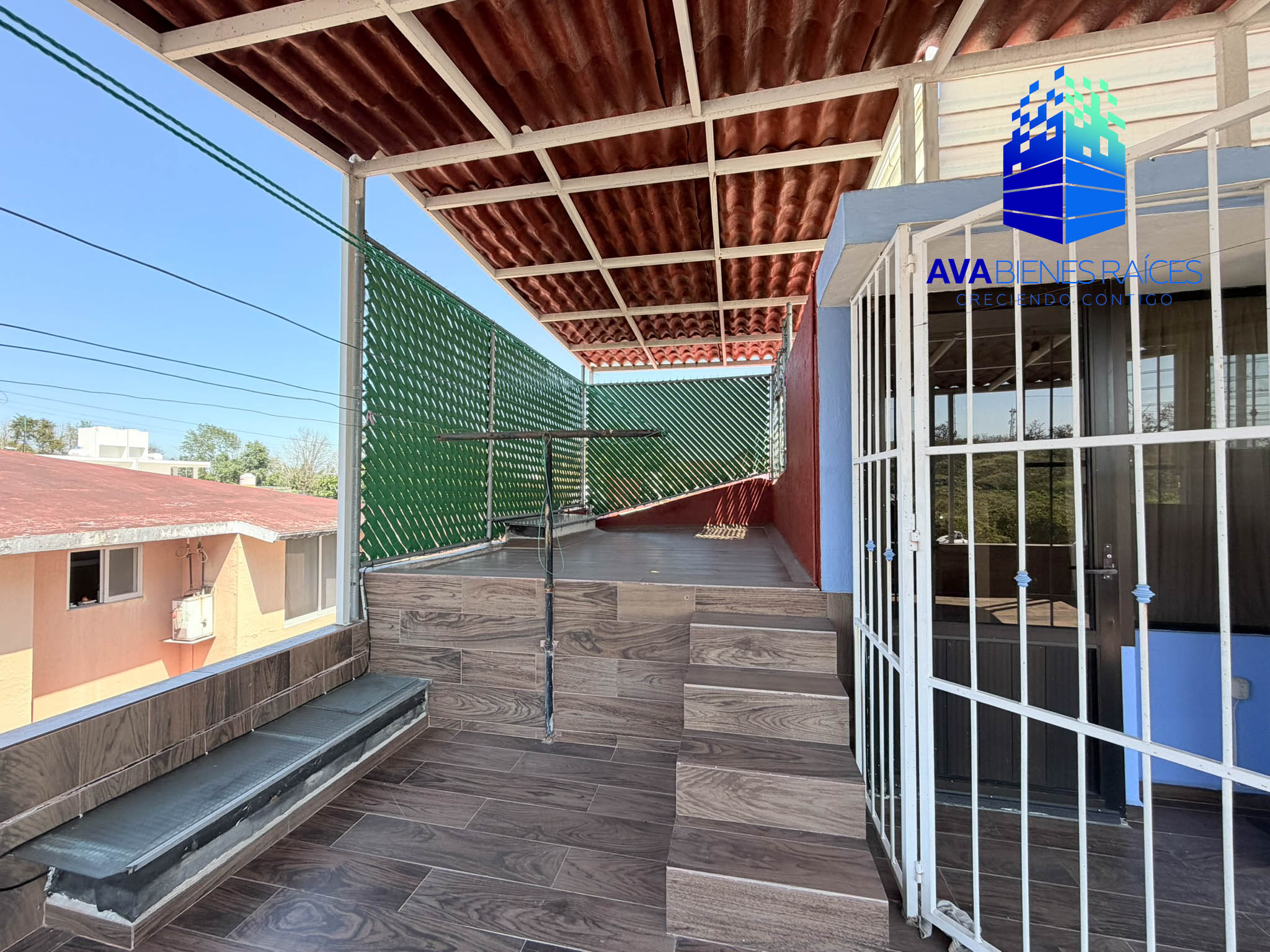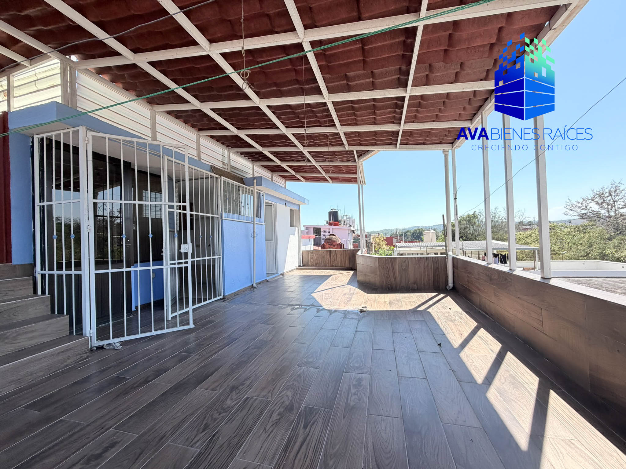 Medio nivel arriba: terraza con pérgola, área de lavado. Cuarto de servicio con baño completo.